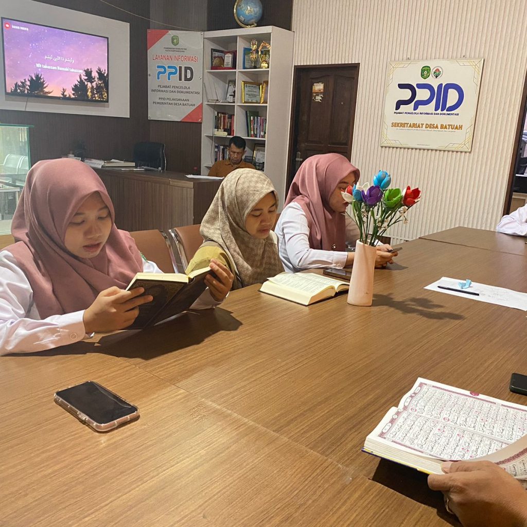 Pemerintah Desa Batuah menggelar kegiatan ini di Kantor Desa Batuah, dengan diikuti oleh perangkat desa. Kegiatan berlangsung dengan penuh khidmat dan antusias, di mana peserta membaca Al-Qur’an bersama dalam suasana yang penuh keberkahan.